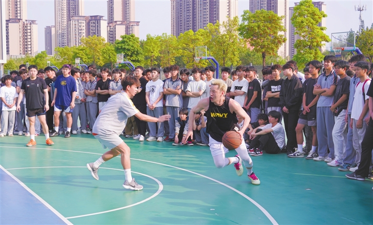 “面面的小白wavy”在网上以篮球技术精湛出圈,此次走进校园,在交流的同时,也向学生们传递了永不言弃的体育精神。