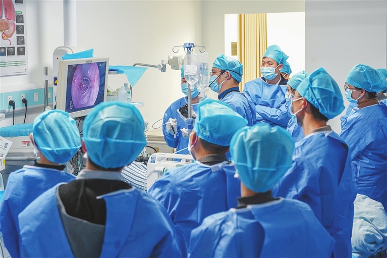 ■专家在东源县中医院开展超声内镜检查等实操演示 本报记者 杨坚 摄