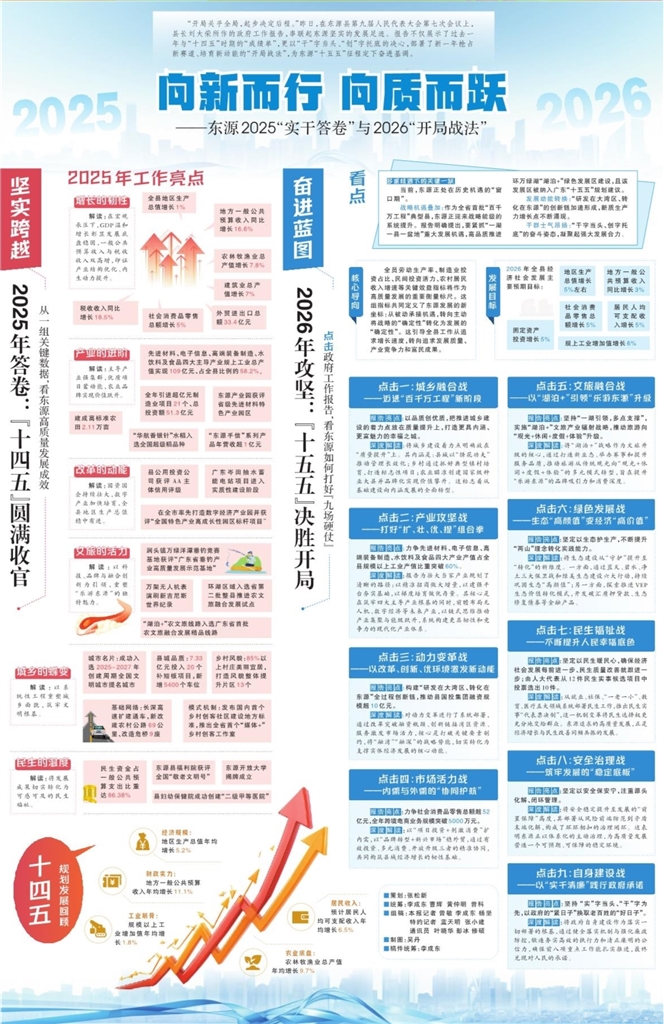 “开局关乎全局,起步决定后程。”昨日,在东源县第九届人民代表大会第七次会议上,县长刘大荣所作的政府工作报告,串联起东源坚实的发展足迹。报告不仅展示了过去一年与“十四五”时期的“成绩单”,更以“干”字当头、“创”字托底的决心,部署了新一年抢占新赛道、培育新动能的“开局战法”,为东源“十五五”征程定下奋进基调。