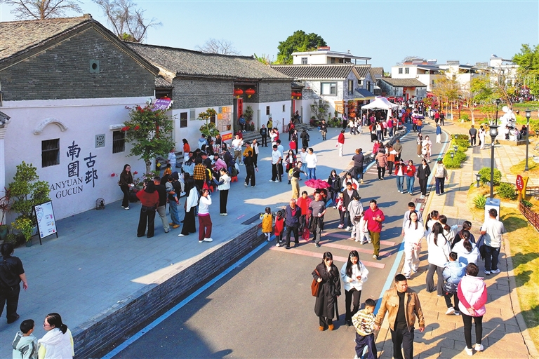 ■春节假期,南园古村以“红红火火过大年”为主题,开展系列“非遗进景区”文艺巡演,吸引了众多游客前来打卡。本报记者 杨坚 摄