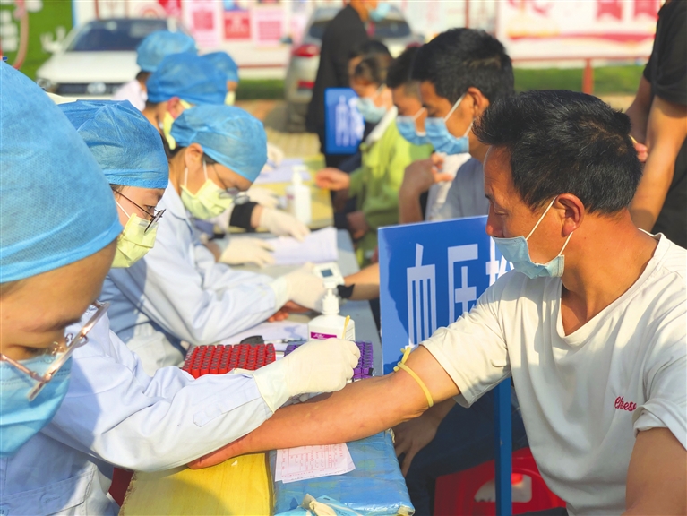 ■中建八局河源项目部组织工人进行体检。为确保项目一线工人能够健康安全作业,日前,中建八局河源项目联手同济医院举行千人大体检活动。