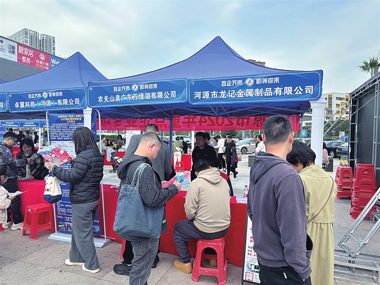 ○本报讯 记者 王亚娇 特约记者 聂燕民 张立 通讯员 曾禹霖 近日,“百企万岗、‘职’等你来”市县镇三级联动大型系列招聘活动举行,河源国家高新区组织农夫山泉、龙记集团、西勤精密等25家重点企业参加,提供就业岗位1000多个。
