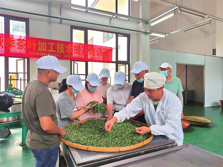 ■近日,由和平县科技创新服务中心、深圳职业技术大学联合主办的茶叶加工技术提升培训班在热水镇同湖月茶场举行。来自全县的茶叶种植大户、合作社技术骨干、茶叶加工企业生产管理人员、基层农业技术推广人员等共计40余人参加培训。