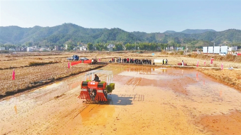 ○本报讯 记者 叶春雨 特约记者 骆鹏翔 通讯员 梁锦明 日前,和平县在彭寨镇举办抛秧机现场观摩推广活动,全县种粮大户齐聚现场参与观摩,为即将到来的春耕生产注入强劲科技动能(如图,叶春雨 摄)。