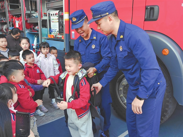 ○本报讯 记者 朱晓颖 特约记者 廖志良 通讯员 钟媛 近日,城东幼儿园孩子们和家长走进江东新区消防救援大队,参加消防教育实践活动。