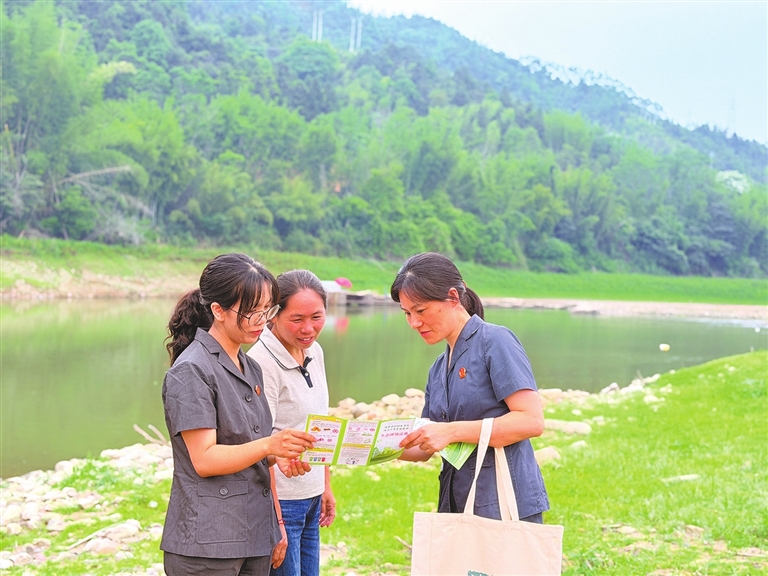 “万绿湖的水质要稳定保持在国家地表水一类标准,需要每一位乡亲的共同参与。”干警们走村入户,向村民宣传环万绿湖“湖泊+”绿色发展区的重大部署,让“湖泊+”理念更加深入人心。
