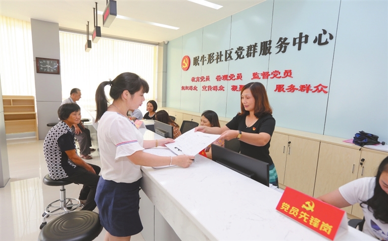 ■龙川县强化基层党组织建设,不断提升为民服务能力。图为龙川县老隆镇眠牛形社区党群服务中心工作场景。