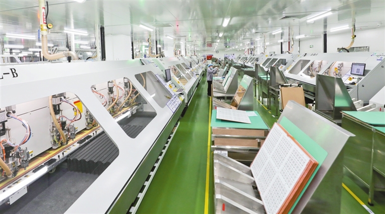 而在三期项目一侧,景旺电子科技(龙川)有限公司FPC二期厂房里的智能化生产车间,繁忙而有序的生产线正源源不断地输出产品——高密度挠性电路板。这款获得过“创新河源”科技进步奖二等奖的创新产品,赢得了国内外市场的广泛赞誉。