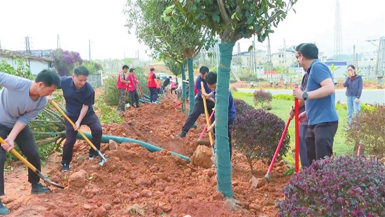■党员代表、志愿者携手种下绿化树。 通讯员 钟志炜 摄