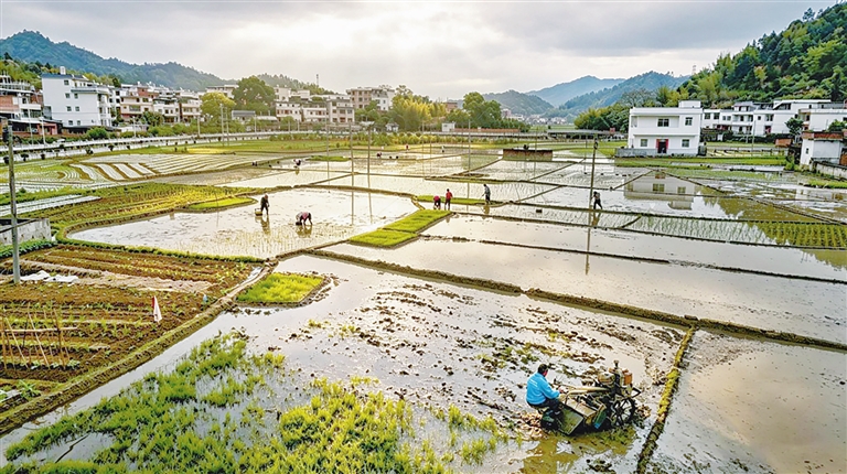 ○本报讯 记者 陈小玲 欧阳柳 当前,龙川各镇农户抢抓农时,紧锣密鼓开展早稻抛秧作业,田间地头一派热火朝天的春耕景象。