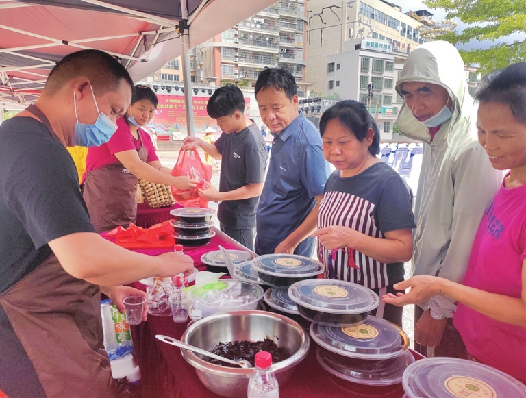 在文明风采展区,由文明单位设立咨询台,耐心解答群众问题;文明校园的创建成果展板,吸引了众多群众驻足。紫金蝉茶展区茶香四溢,客家皇、山猪窝等多家茶企集中展示,进一步打响了“紫金蝉茶”的公共品牌,推动茶产业发展。乡镇特色展区琳琅满目,山茶油、嘉宝果酒、三红蜜柚、芭乐味黄金百香果、绿壳鸡蛋等农特产品,吸引大批市民前来逛展选购。紫金肉丸、紫金椒酱、马牙(芙蓉肉)、伯公凹凉粉、赖师傅月饼等经典美食一一亮相非遗美食展区,让群众近距离领略非遗技艺的独特魅力。在文明新风宣传区,由城管、民政、公安、卫健等部门开展垃圾分类、移风易俗、防诈骗和健康知识宣传,内容丰富实用,贴近生活。在无偿献血区,不少市民纷纷登上献血车,挽袖献血,为生命助力,传递温暖人心的正能量。