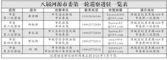 八届河源市委第一轮巡察公告