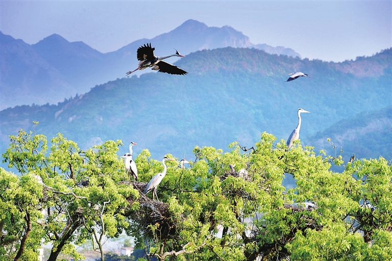 ■一群苍鹭在福州市碧里乡濂澳村树林中栖息(2020年4月15日摄)。