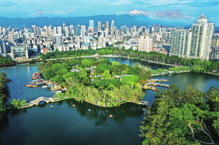 ■福州西湖公园及周边城市景观(2020年5月18日摄)。