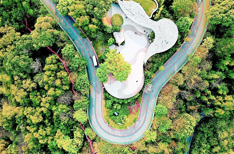 ■在福州郊野公园拍摄的森林步道景观(2021年3月16日摄)。
