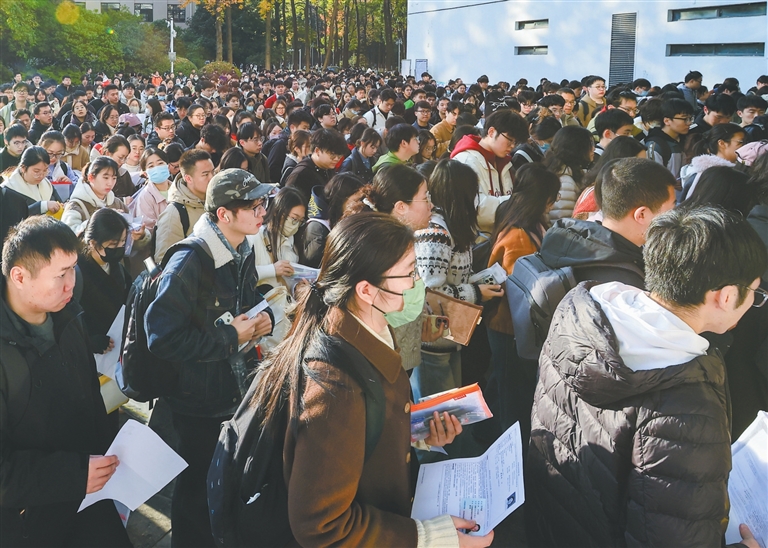 11月30日,在南京林业大学考点,考生进场准备参加考试。