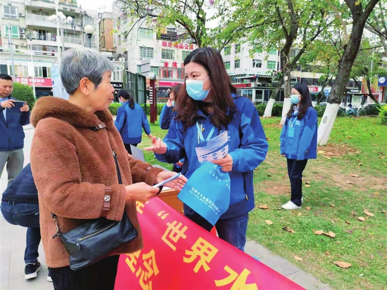 ○本报讯 记者 高芳芳 近日,市水务局联合市水业集团在市区茶山公园开展2021年“世界水日”“中国水周”系列宣传活动,倡导市民节水爱水,引领全社会形成珍惜水、节约水、爱护水的良好风尚。