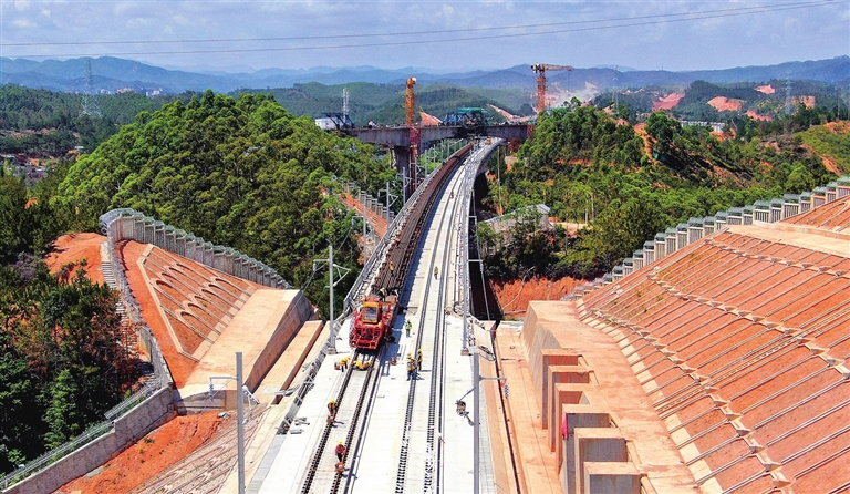 ○本报讯 记者 郝晓楠 通讯员 张湘涛 日前,随着一组500米长轨缓缓铺入赣深高铁跨龙怀高速公路中桥无砟轨道板上,标志着中铁六局承担施工的赣深高铁龙川段正式开始铺轨。