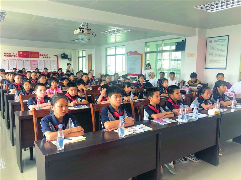 ○本报讯 记者 周慧荷 昨日,市关工委联合源城区关工委等部门在源城区源西街道白岭头村开展“学党史,颂党恩”进社区教育活动,白岭头小学41名学生认真聆听了老战士、老党员许基和殷云祥的革命经历(上图。周慧荷 摄)。