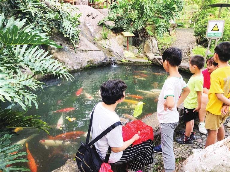 ■家长带小孩随意投喂金鱼 周慧荷 摄