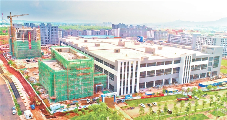 红苹果家具(河源)科技园项目规划占地面积6.4万平方米,规划建筑面积为15.4万平方米,其中厂房面积11万平方米,智能立体库4000平方米,智能传送区6300平方米,研发楼7900平方米,宿舍楼2.5万平方米。“我们目前所有的主体结构已经封顶,进入装修阶段,其中厂房装修已经完成了80%。”该项目施工方现场负责人告诉记者,建设单位实施挂图作战,每天安排200多名工人,全力以赴推进项目建设。目前,厂房的外立面装修已全部完成,正在进行内部装修收尾作业以及消防、电梯施工;智能立体库正在封外墙板;研发楼、宿舍楼也即将拆除外架网,进行水、电及消防安装。