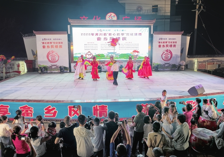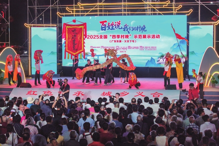 ■10月1日晚,东源县义合镇下屯村举行2025年全国“四季村晚”示范展示活动,开场节目《追龙少年》点燃现场气氛。