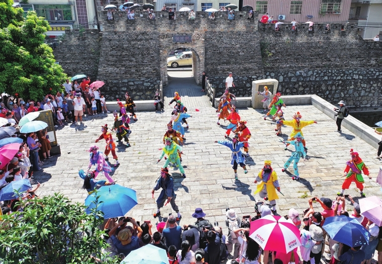 ■10月2日,龙川县佗城景区举行马灯舞、英歌舞等非遗代表性项目展演。