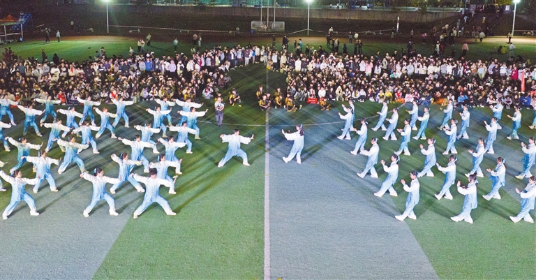 ■在广师大河源校区校运会上,运动员展示太极拳。