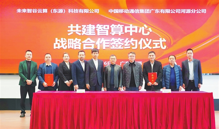 近日,未来智谷云算(东源)科技有限公司(下称未来智谷云算)与中国移动河源分公司(下称河源移动)举行共建智算中心战略合作签约仪式。双方将围绕智算中心基础设施、行业解决方案与AI大模型应用等领域开展深度合作,共同打造辐射华南的标杆性AI算力枢纽,构建粤港澳大湾区东北部规模最大、能效最高的公共算力底座之一,为河源市及粤港澳大湾区产业智能化升级注入新动能。