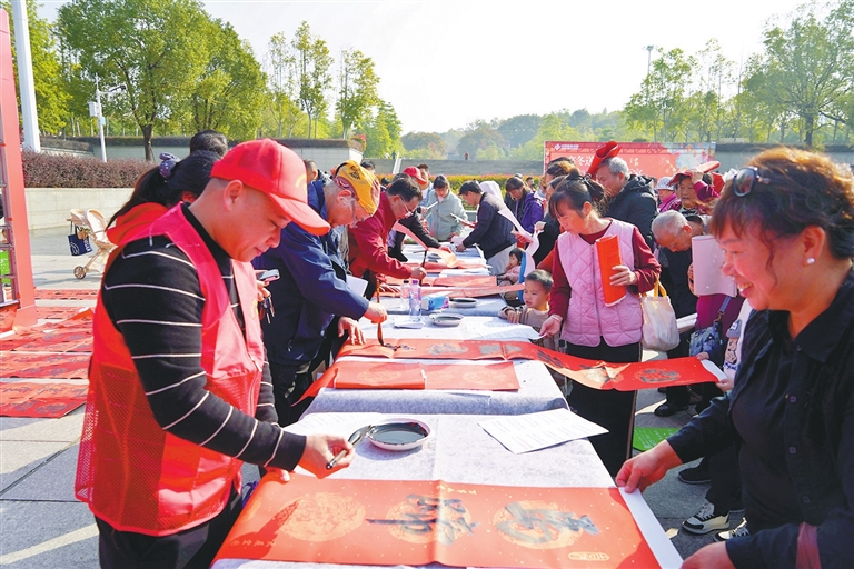 活动现场,春联书写区,书法家现场挥毫,刚写好的春联被小心晾晒,市民排队挑选联句;义诊义剪区里,市中医院等单位的医护人员为市民提供中医把脉、眼科检查、牙科咨询等服务,理发师则为市民免费修剪头发。