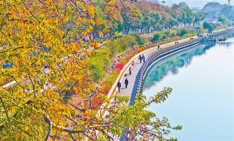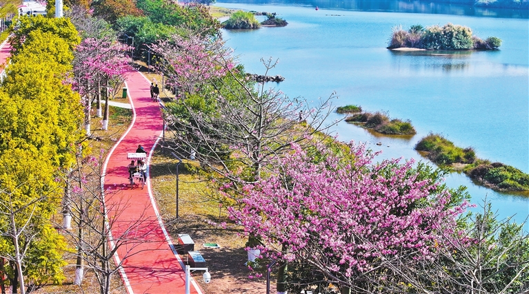 连日来,河源天气持续晴好,河源客家文化公园、九里湖公园、白鹭岛公园、东江湾公园等城市公园凭借完善的基础设施,成为市民休闲健身、亲近自然的首选地。天然氧吧中,健身步道上人潮涌动,休闲长椅旁笑语盈盈,市民在落羽杉与异木棉的斑斓色彩中,尽享暖冬惬意。