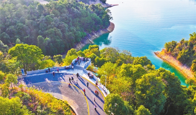 ■市民在市区新丰江亲水步道享受冬日美景