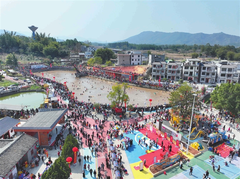 ■正月初三,延续400年的汶水塘捕鱼节吸引了2万名游客与村民参与。本报记者 杨坚 邓宇权 黄赞福 摄