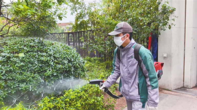 ■连日来,市区部分物业服务企业积极开展蚊媒孳生地清理与集中消杀工作。本报记者 杨宝如 摄