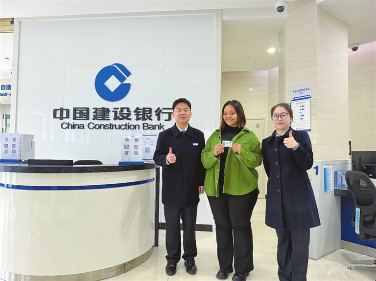 ■外国来华友人DLAMINI女士(中)在我市成功申领集工作许可与社会保障功能于一体的“证卡合一”实体社保卡,成为我市首位享受该项便利服务的外籍人士。