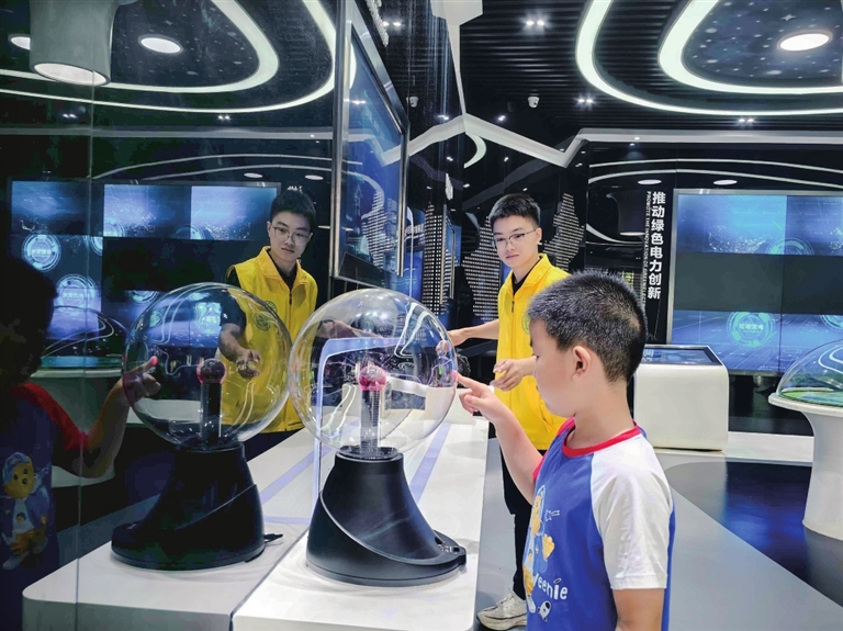 每当有游客在操作 “电磁球”“水力发电模拟” 等互动设备遇到难题时,志愿者总能第一时间上前指导,用专业服务化解游客的困惑。
