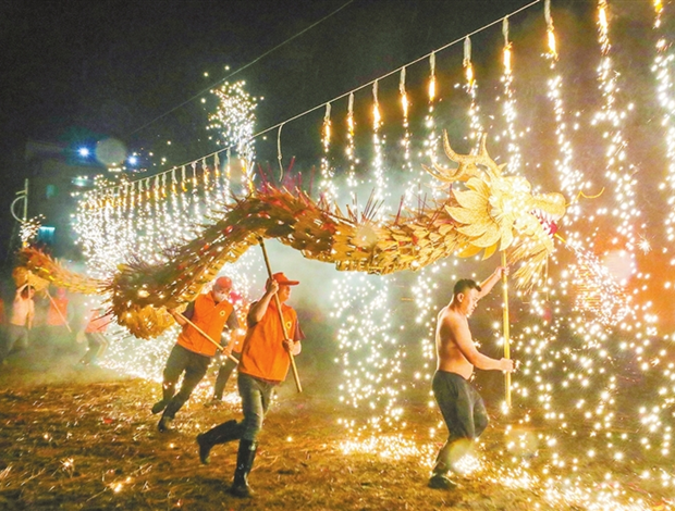 ○本报讯 记者 田红秀 李成东 杨坚 正月十三,东源县骆湖镇江坑村、红花村联合举办庆灯追龙民俗活动。锣鼓喧天、花灯璀璨,...